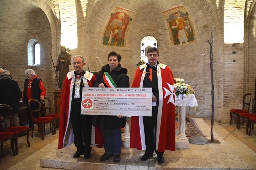 Al Signor Sindaco di Monsampietro Morico, avv. Romina Gualtieri, il Priorato ha devoluto € 10.000 quale contributo per le opere di restauro di quel comune.